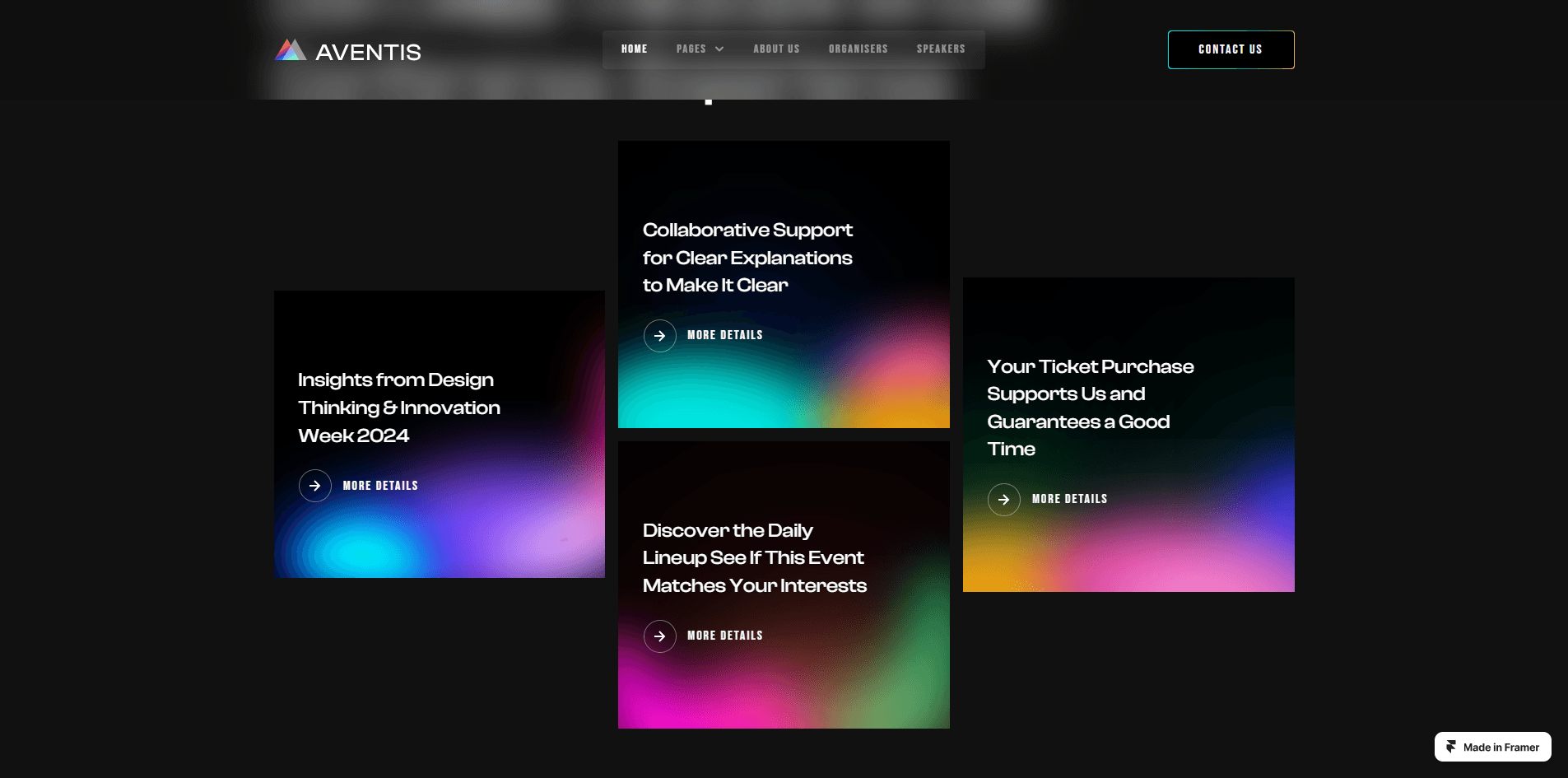Aventis is a branded event website designed for large-scale conferences and live activations. Built to be the digital front door for major events - driving registrations, showcasing the programme, and giving organisers full control over content, speakers, sponsors, and scheduling. Bold visuals, fast load times, and a seamless attendee journey from first visit to ticket purchase.