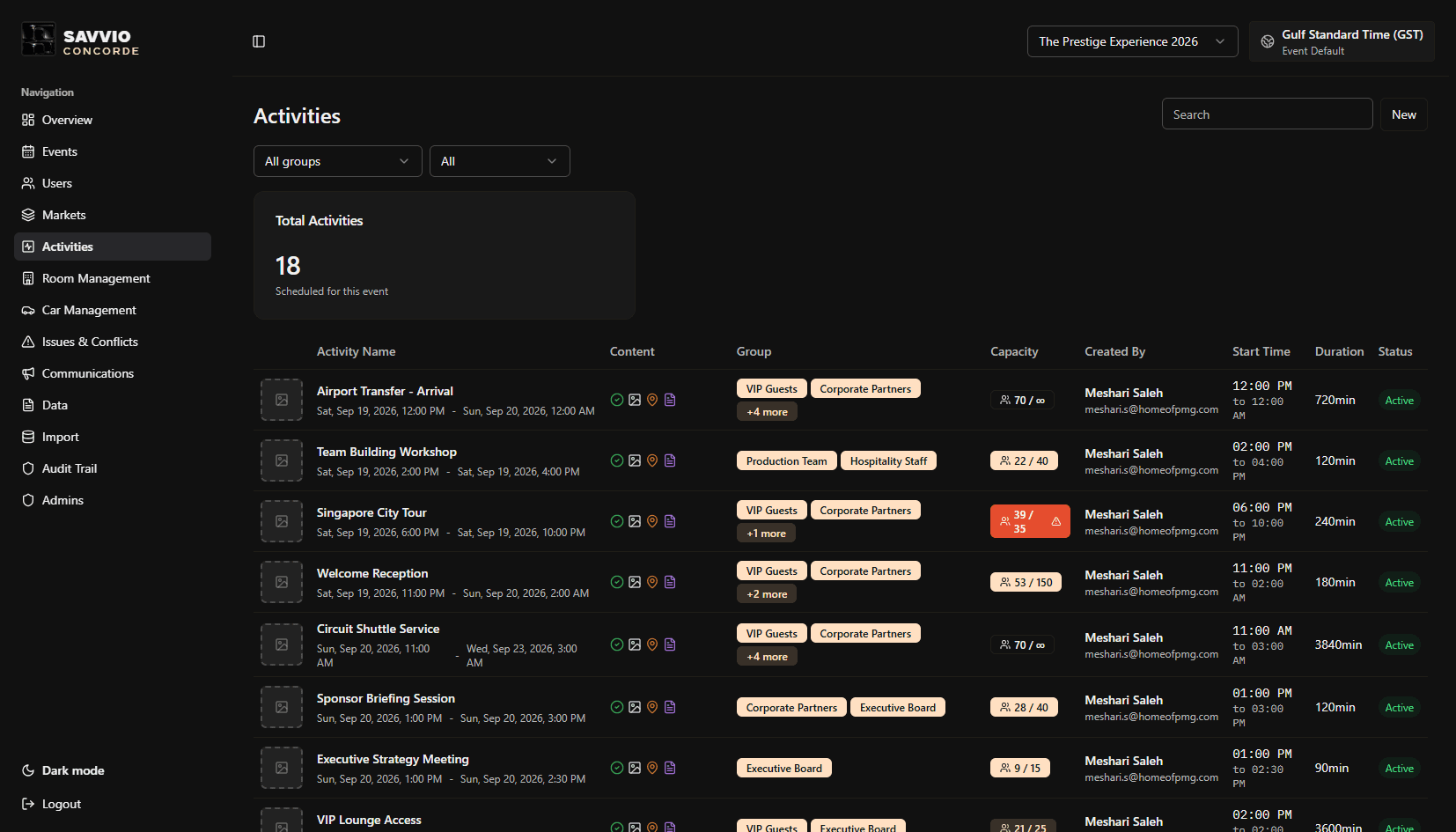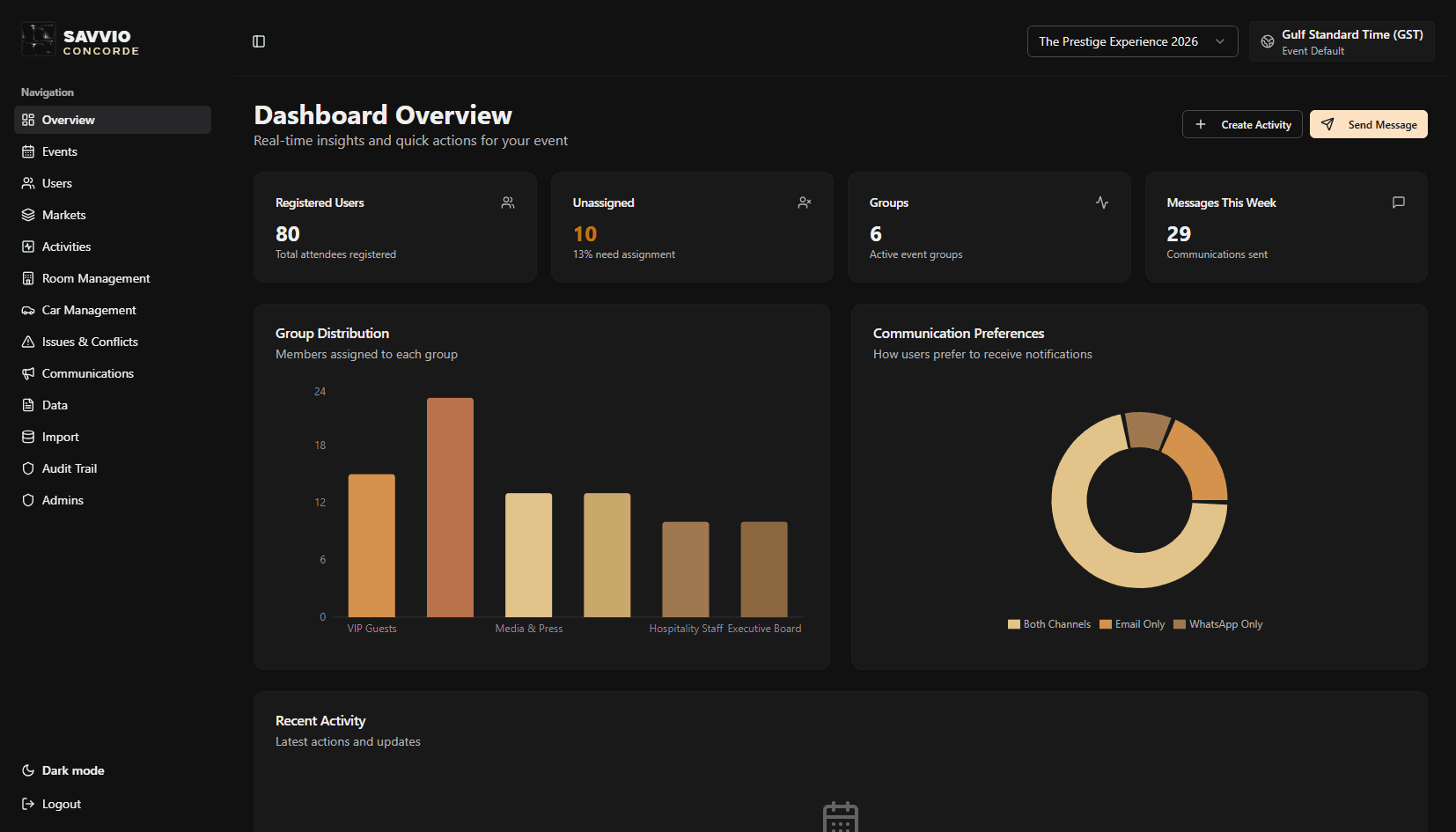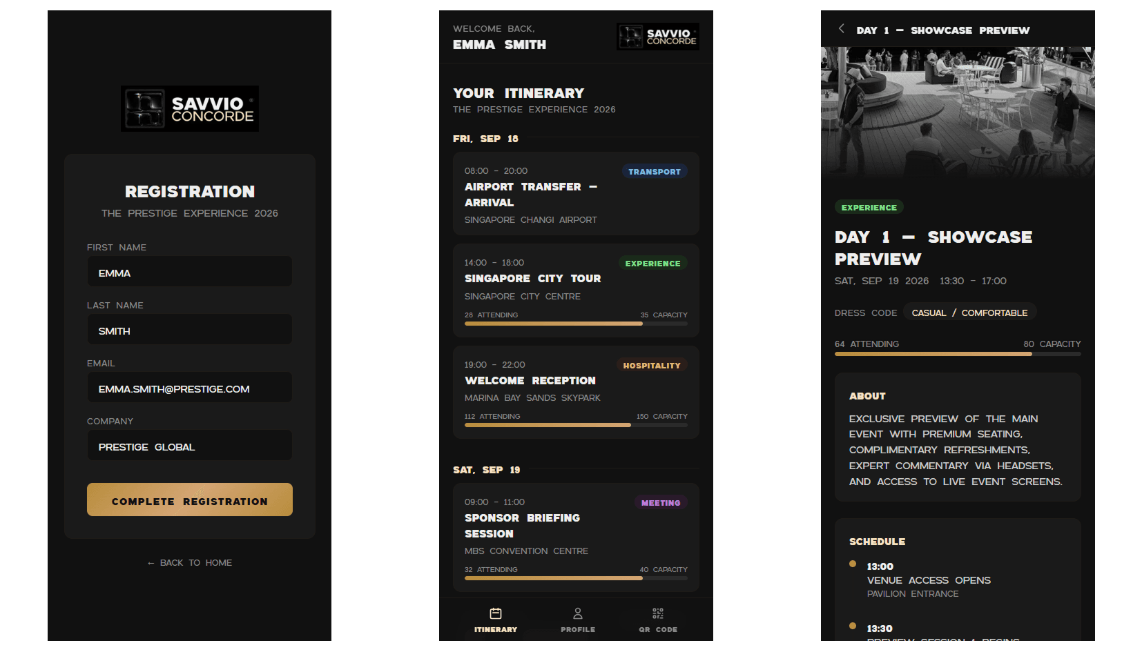 Savvio Concorde is a registration and attendee management platform we're developing for agencies that run branded events and activations. Instead of rebuilding RSVP systems from scratch for every event, Concorde gives teams a single platform to manage registrations, attendee journeys, and communications — with full branding control and real-time analytics built in.
